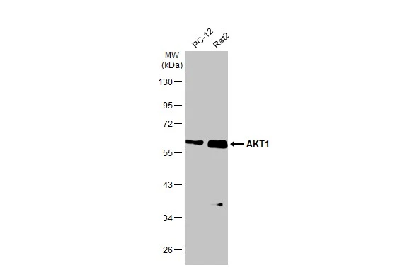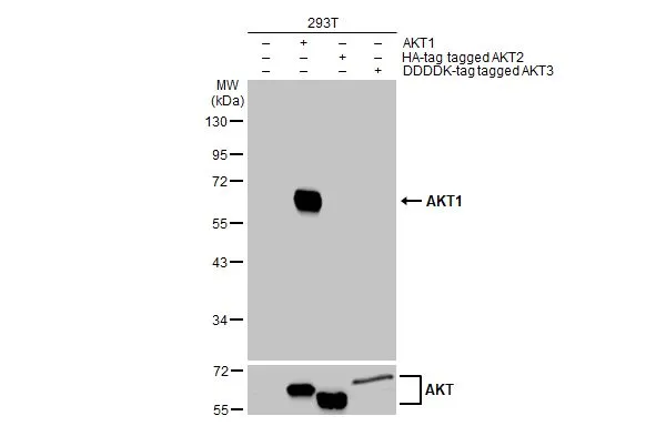 | Immunogen: | Recombinant protein encompassing a sequence within the center region of human AKT1. The exact sequence is proprietary. |
