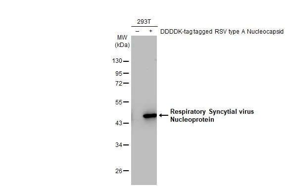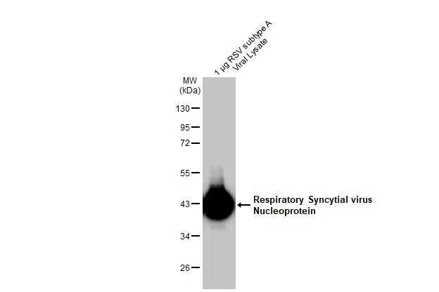 | Immunogen: | Recombinant protein encompassing a sequence within the center region of Respiratory Syncytial virus Nucleoprotein. (Strain A2) |