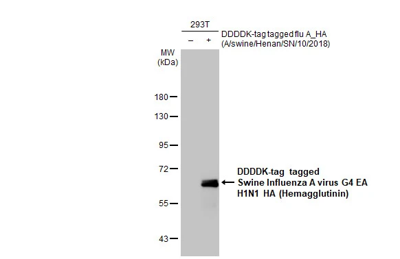 | Immunogen: | Recombinant protein encompassing a sequence within the center region of Swine Influenza A virus G4 EA H1N1 HA (Hemagglutinin) (A/swine/Henan/SN10/2018). The exact sequence is proprietary. |