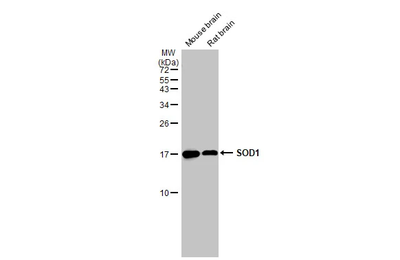 | Immunogen: | Carrier-protein conjugated synthetic peptide encompassing a sequence within the center region of human SOD1. The exact sequence is proprietary. |