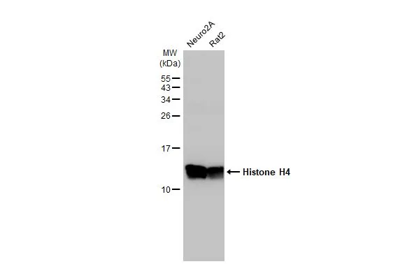 | Immunogen: | Carrier-protein conjugated synthetic peptide encompassing a sequence within the N-terminus region of human Histone H4. The exact sequence is proprietary. |