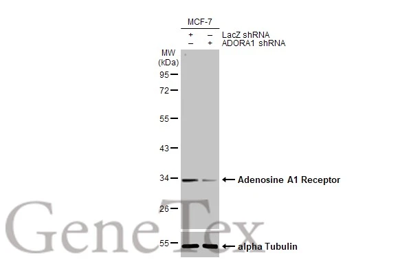| Immunogen: | Synthetic peptide encompassing a sequence within the Intracellular domain of human Adenosine A1 Receptor. The exact sequence is proprietary. |