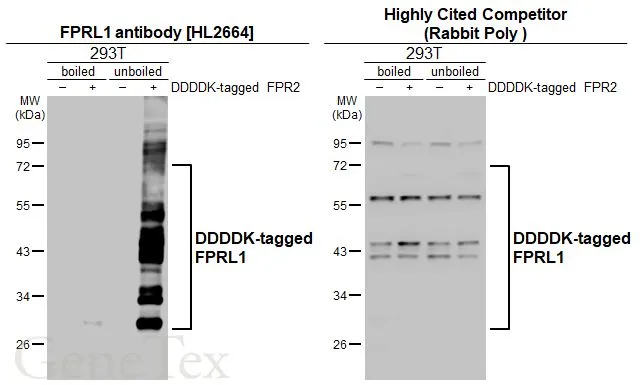 | Immunogen: | Recombinant protein encompassing a sequence within the Extracellular domain of human FPRL1. The exact sequence is proprietary. |
