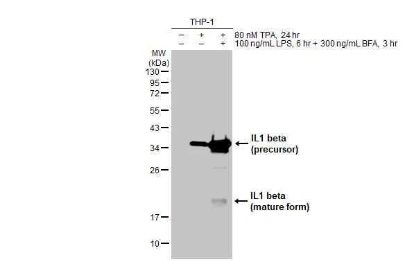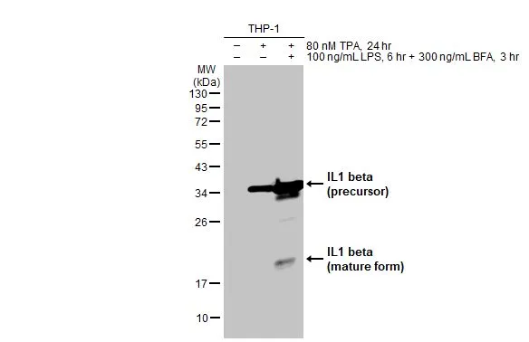 Interleukin-1 beta (IL-1 beta) antibody detects IL-1 beta protein, which is a proinflammatory cytokine produced by active macrophages. In recent reports, IL-1 beta activation via caspase-1 can be induced by infectious pathogens in a process known as "pyroptosis", a form of programmed cell death that initiates an inflammatory antimicrobial response. IL-1 beta is also a key factor in cytokine storms associated with both infectious and non-infectious diseases.