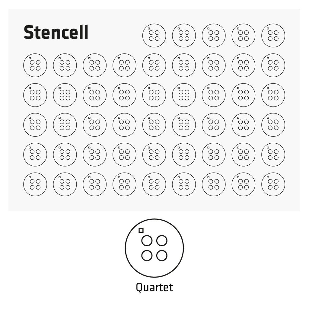 Description: Stencell - Quartet is a PDMS stencil containing 4 cell culture areas allowing to easily parallelize your assays and maximise the condition variations in the same culture dish. Stencell can be stuck on a wide variety of supports and subsequently removed.
