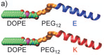 Figure 1: Structure of the DOPE-PEG12-LPE/LPK lipidated oligopeptides used to study liposome fusion.
