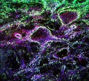 labeled with rabbit anti-synaptophysin + donkey anti-rabbit-Cy2 (711-225-152, green), goat anti-SV2A + donkey anti-goat-Cy3 (705-165-147, red) and mouse anti-SV2 + donkey anti-mouse-Cy5 (715-175-150, blue)