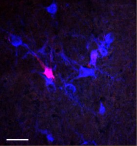Retrograde labelling of sub-coeruleus neurones using an adenoviral vector.