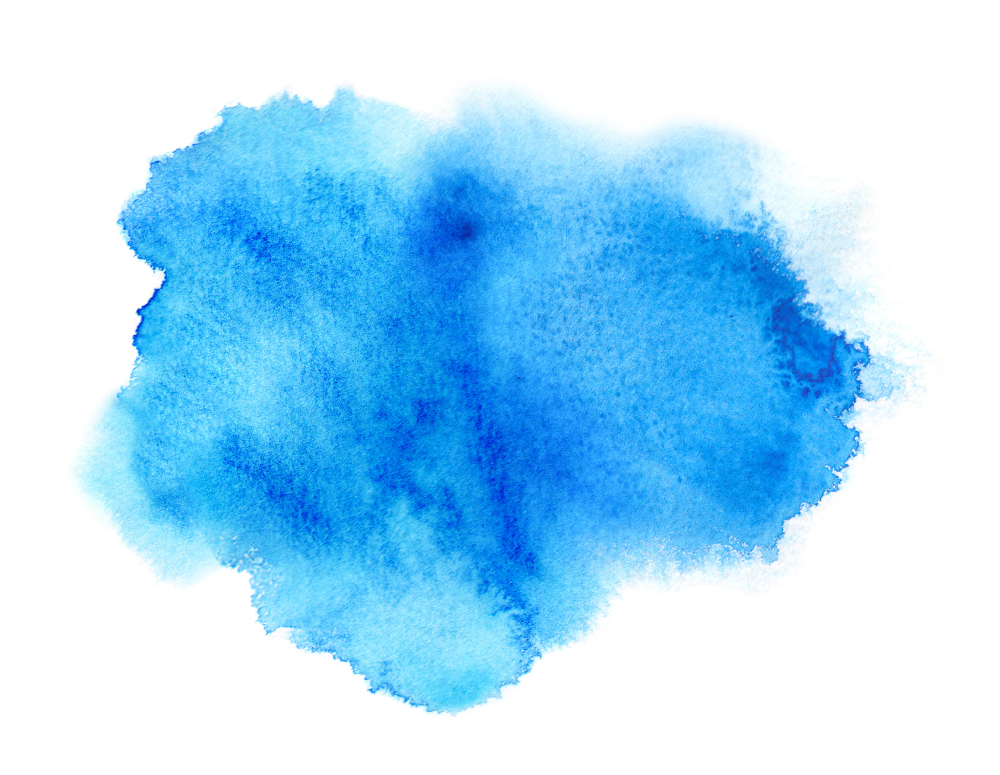 Vivid blue watercolor or ink stain with aquarelle paint blotch