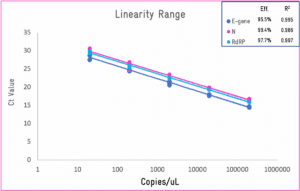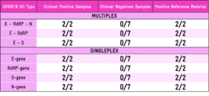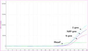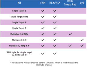 - Single tube 3 target format (E and RdRp genes + RNA control)